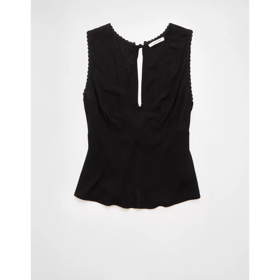 AE V-Neck Tie Back Top – Black