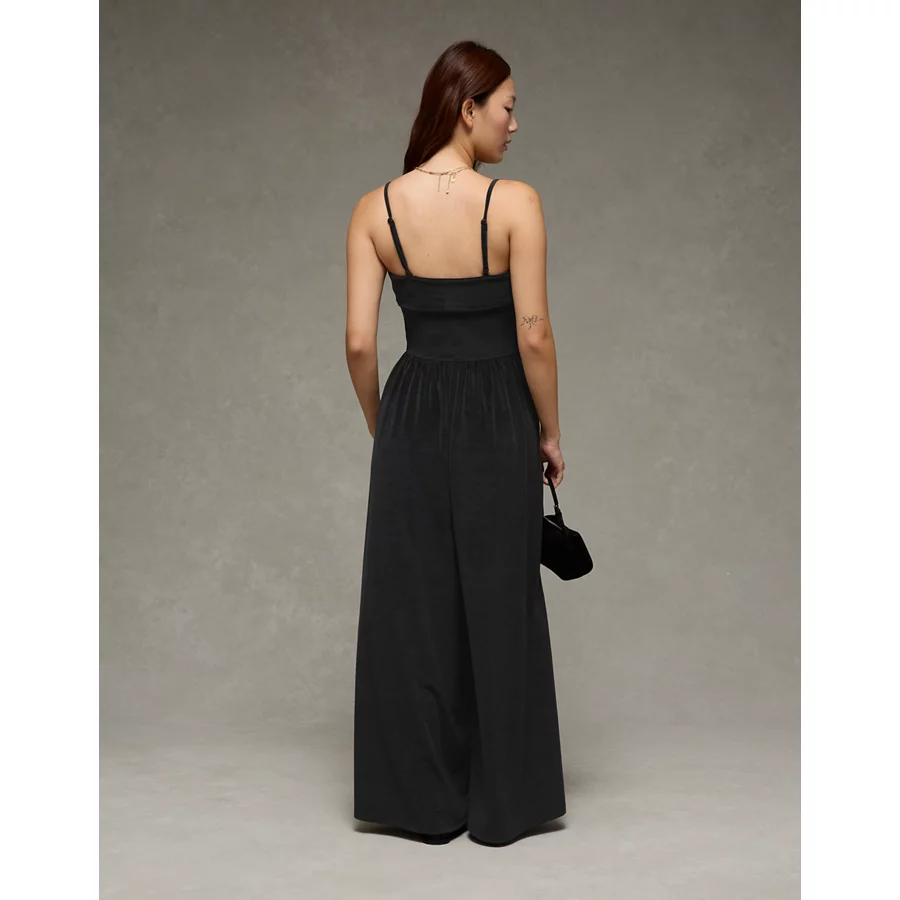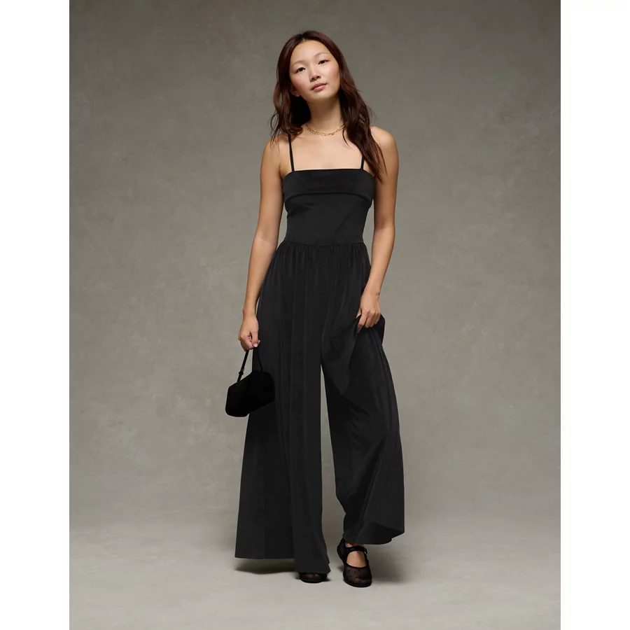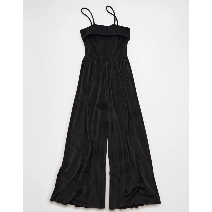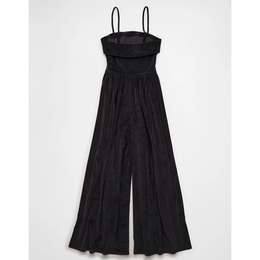 AE Velvet Foldover Jumpsuit – Black