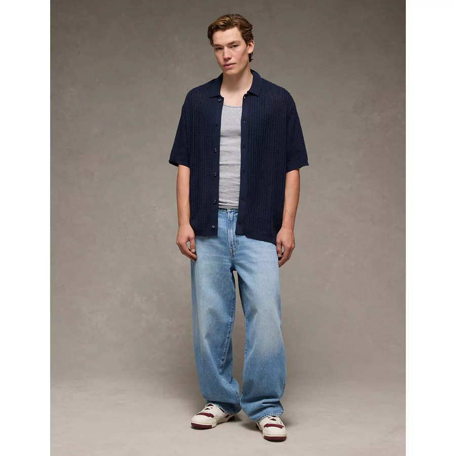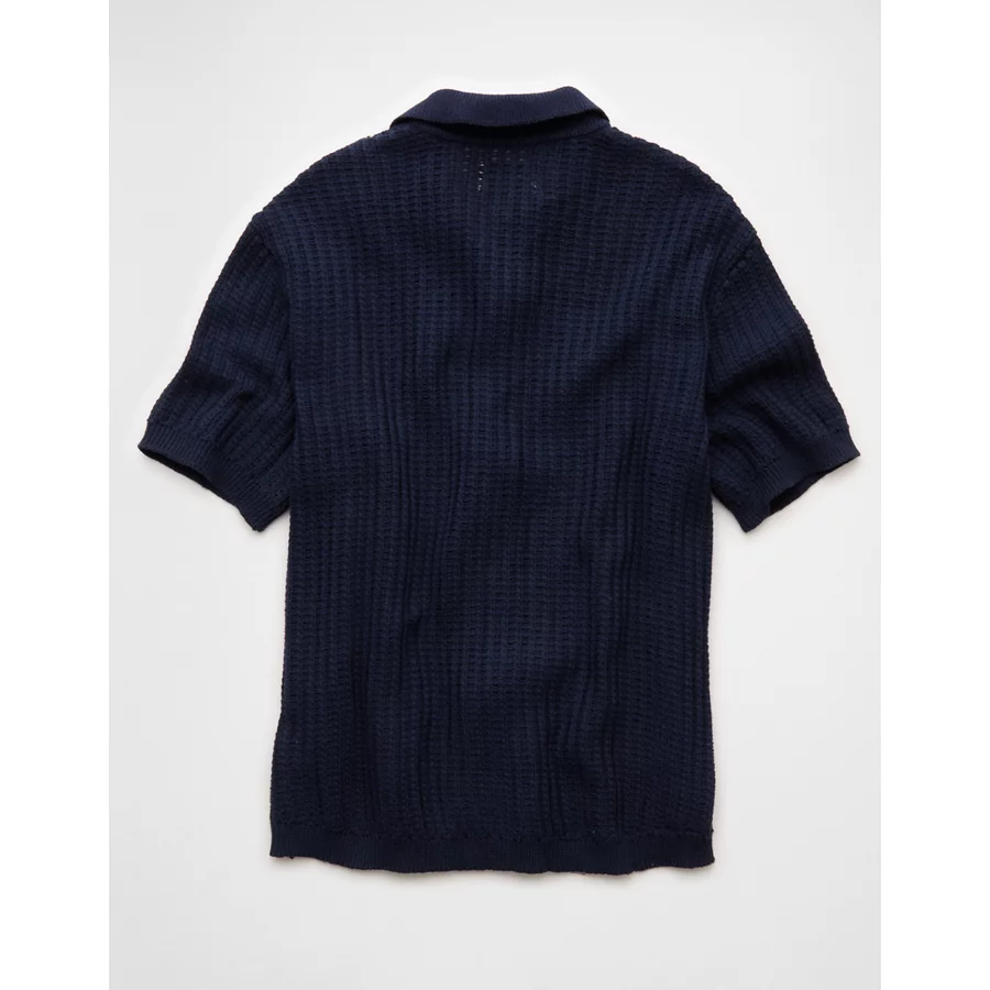 AE Weekend Button-Up Sweater Polo Shirt – Rich Navy