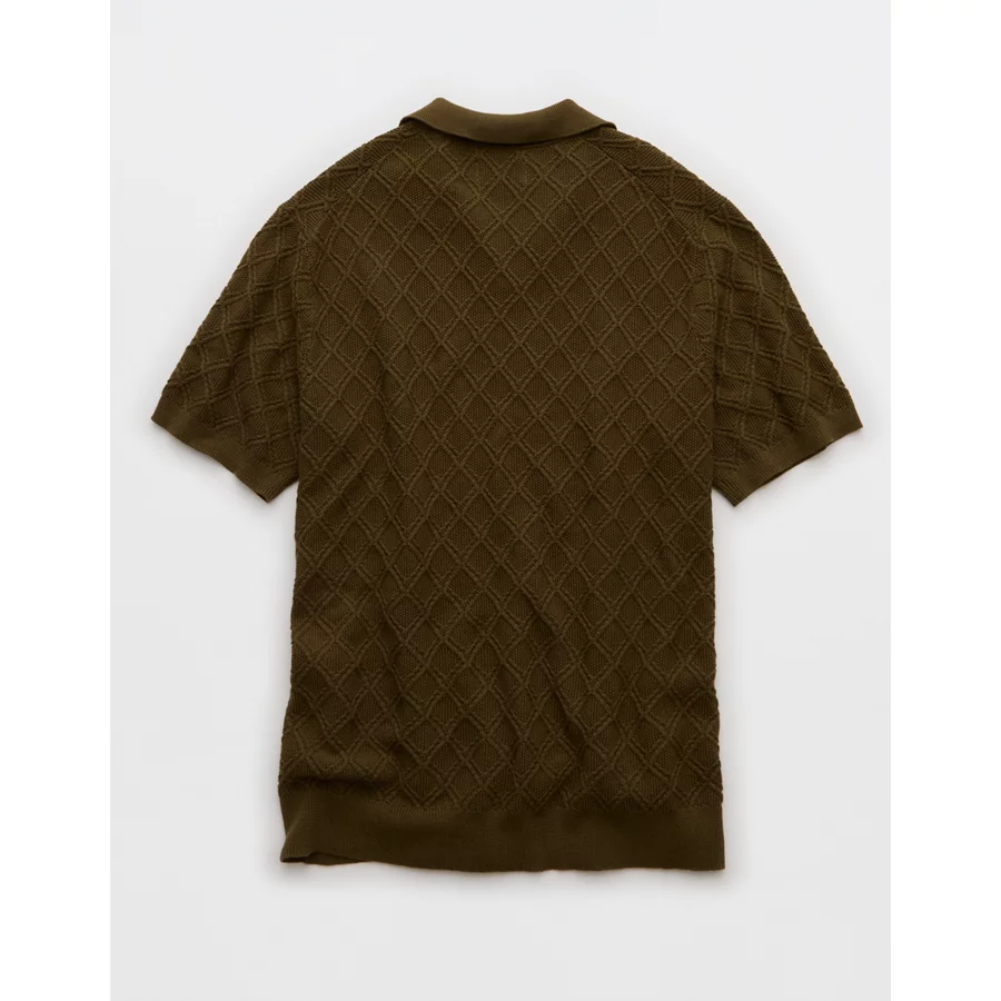 AE Weekend Cable Knit Sweater Polo Shirt – Olive