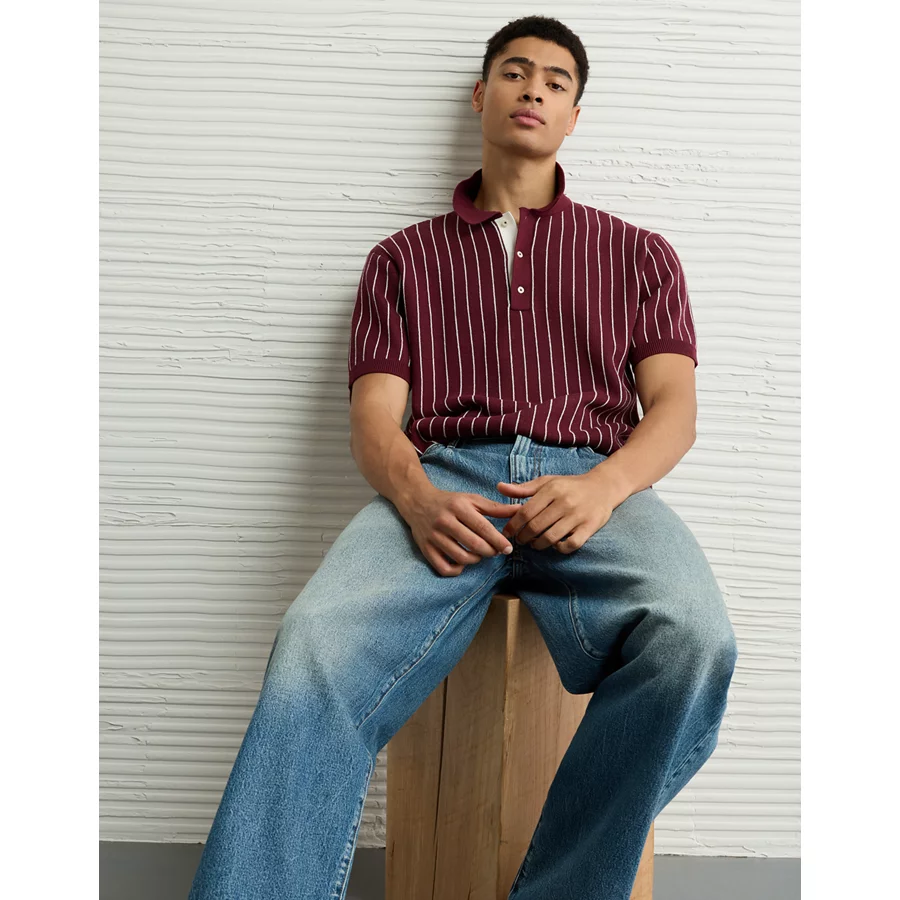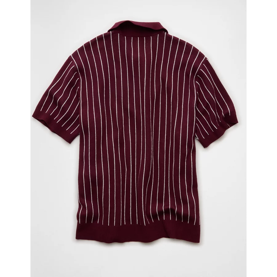 AE Weekend Striped Sweater Polo Shirt – Burgundy