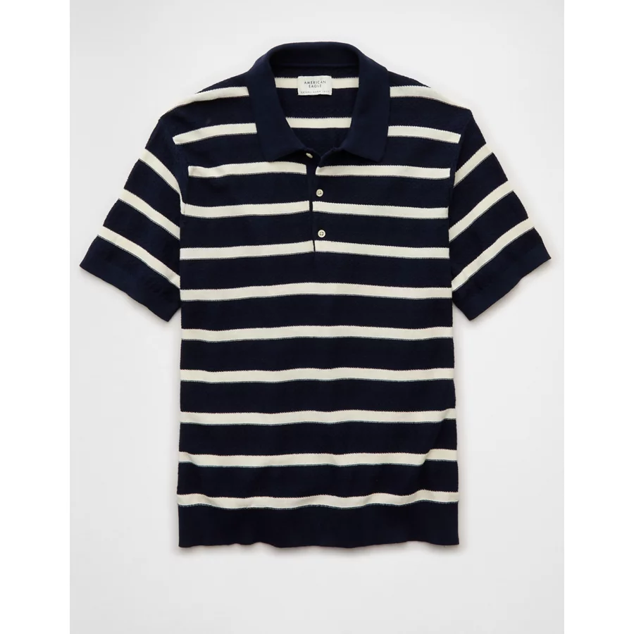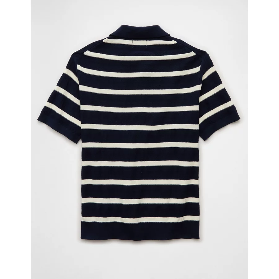 AE Weekend Striped Sweater Polo Shirt – Navy