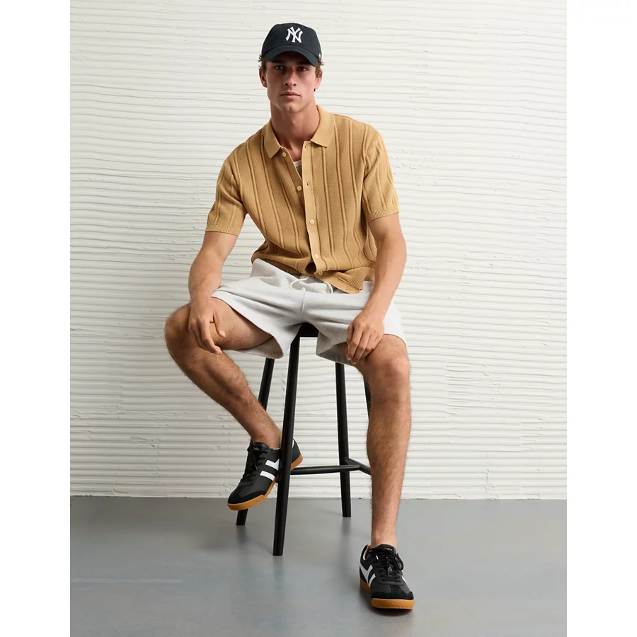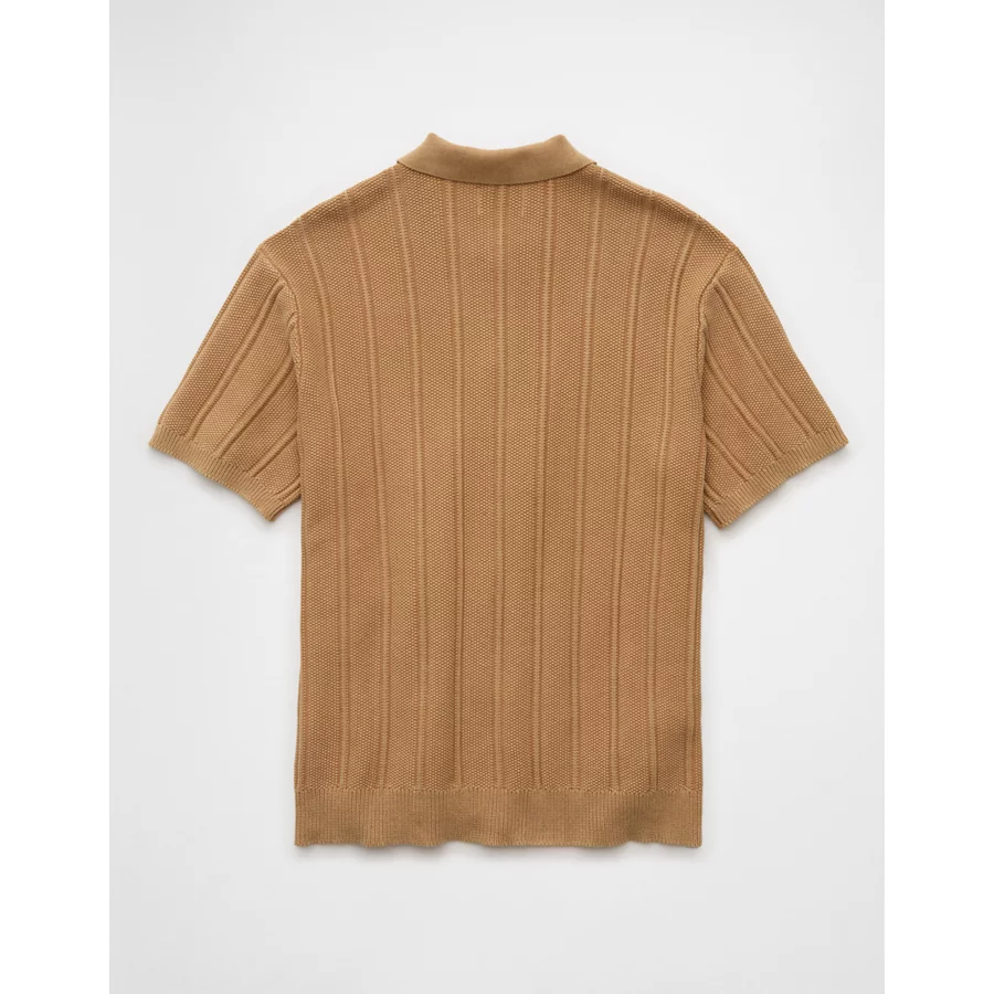 AE Weekend Washed Button-Up Sweater Polo Shirt – Khaki