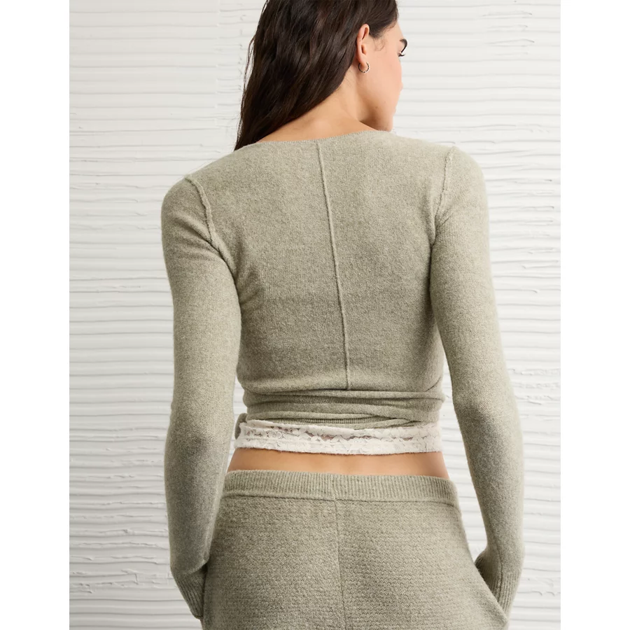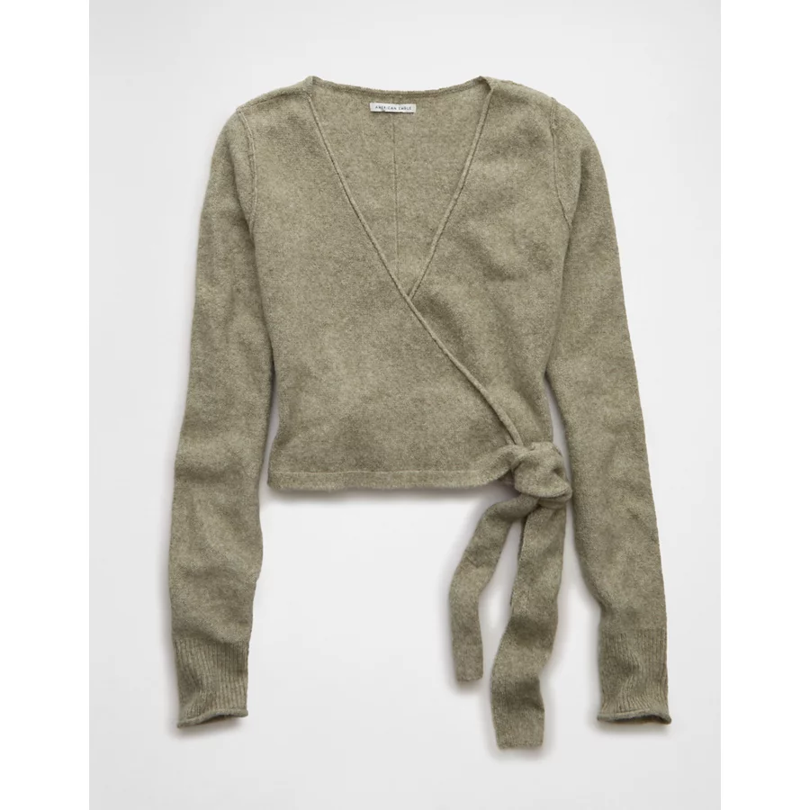 AE Whoa So Soft Ballet Wrap Sweater Top – Faded Olive