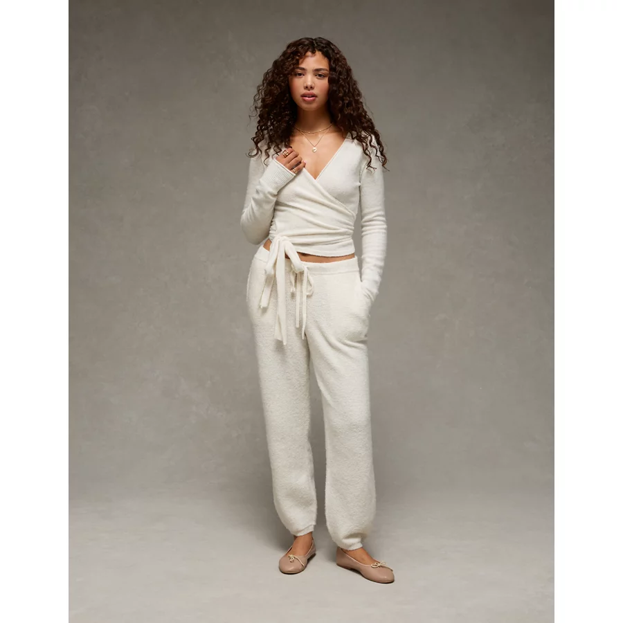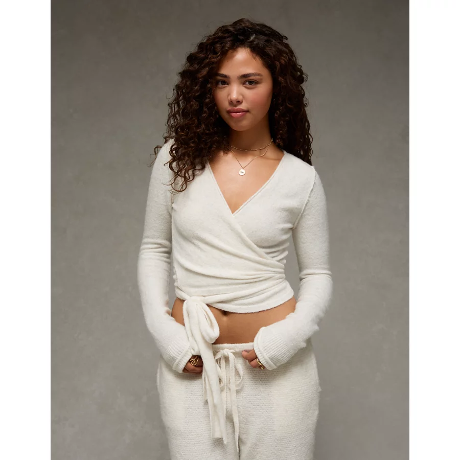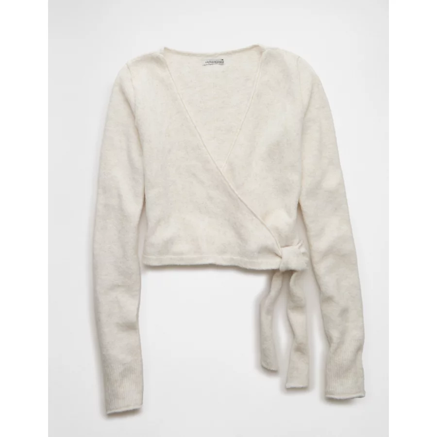 AE Whoa So Soft Ballet Wrap Sweater Top – Oatmeal