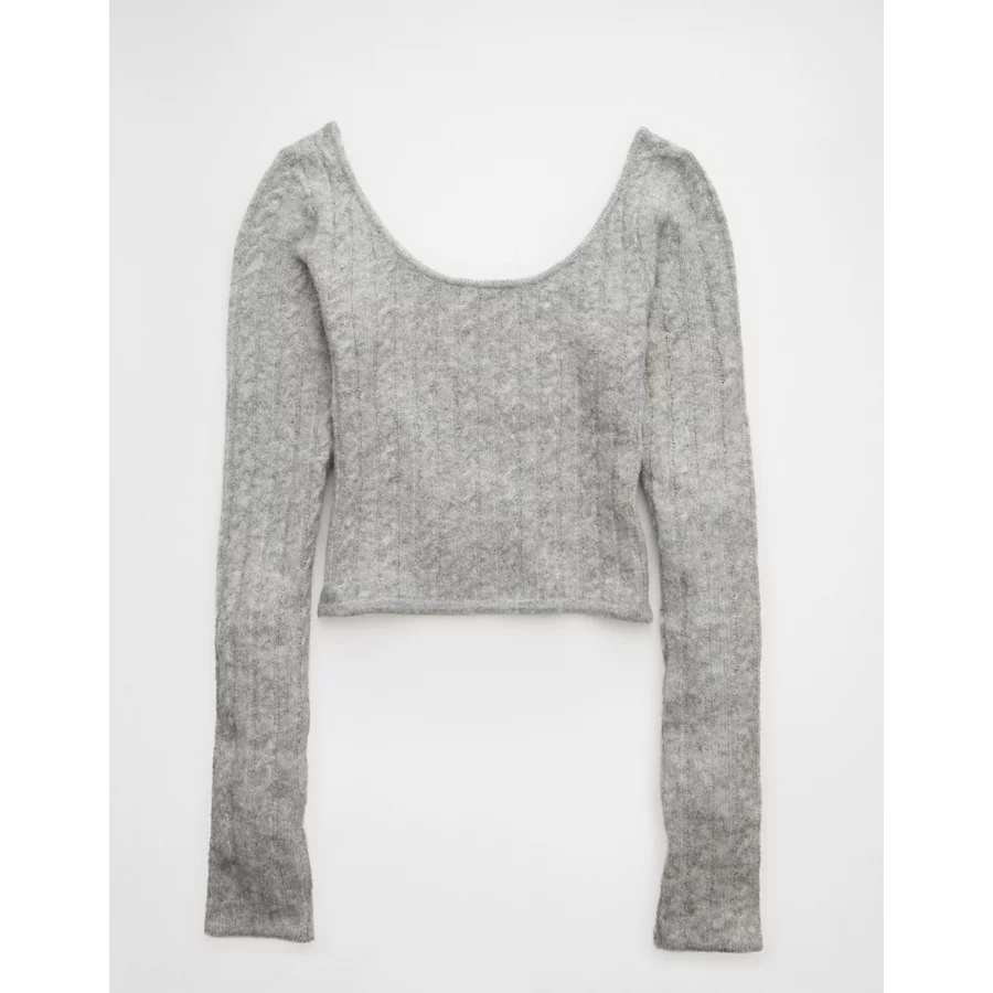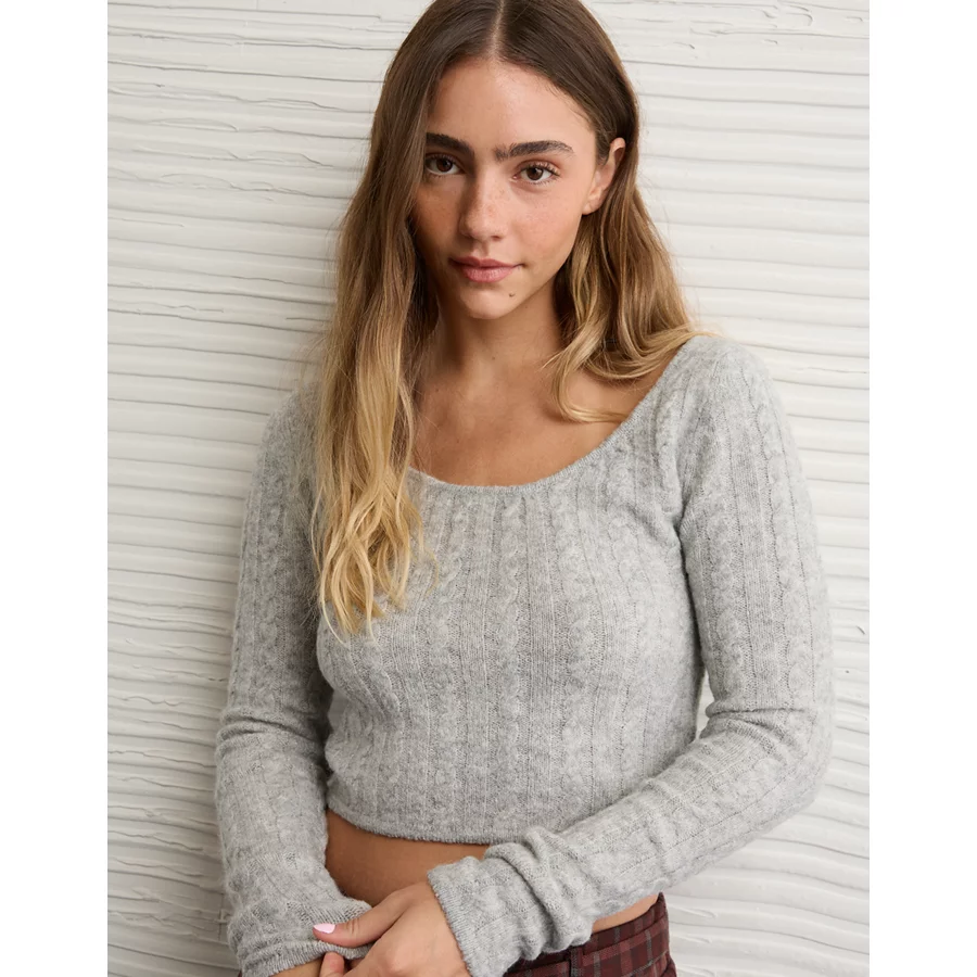AE Whoa So Soft Cropped Scoop Neck Sweater - Grey