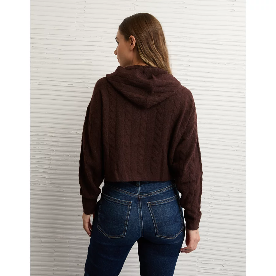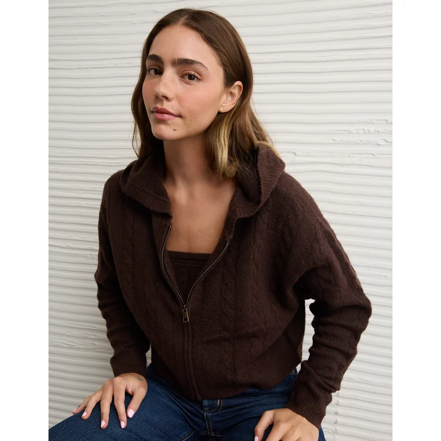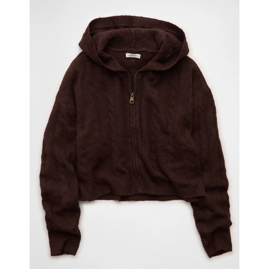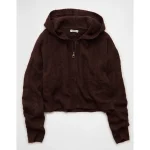 AE Whoa So Soft Cropped Zip-Up Hoodie – Brown