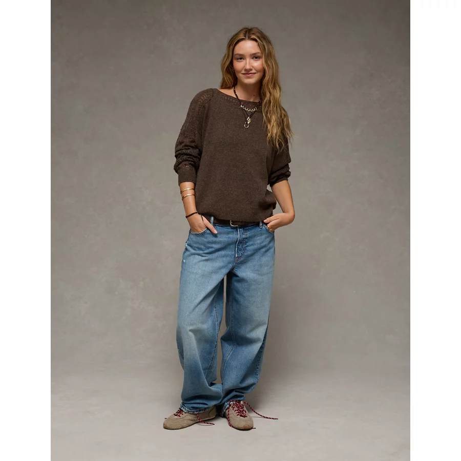 AE Whoa So Soft Lace Sweater - Oatmeal