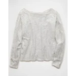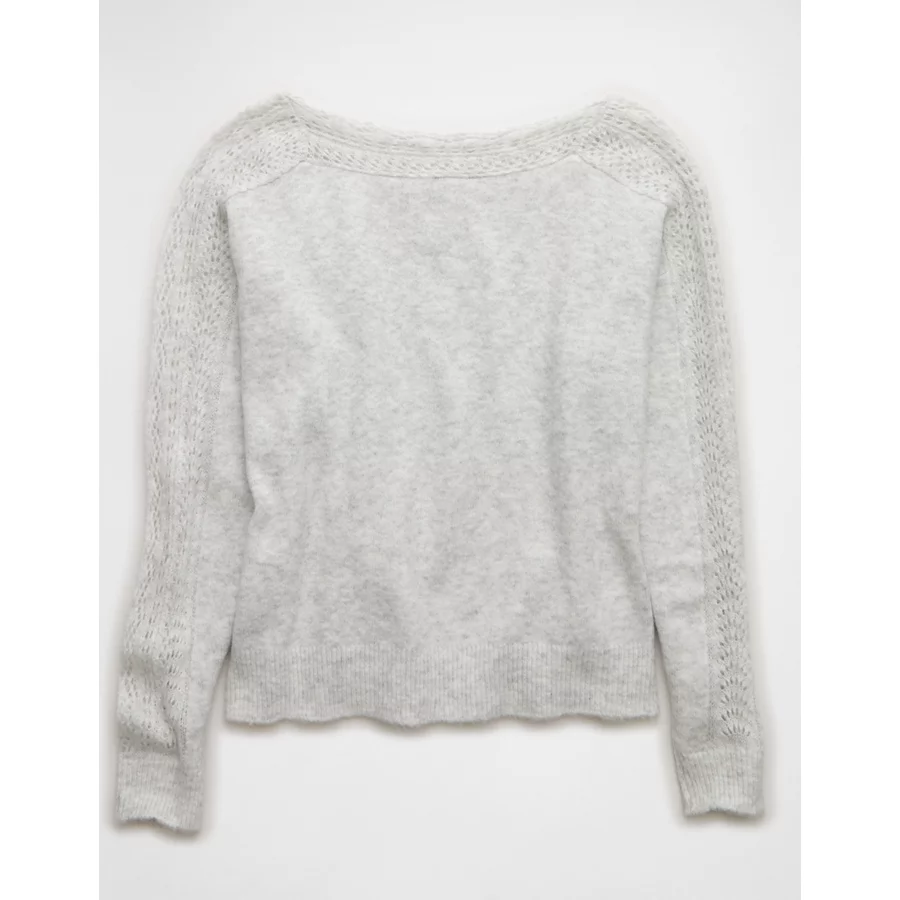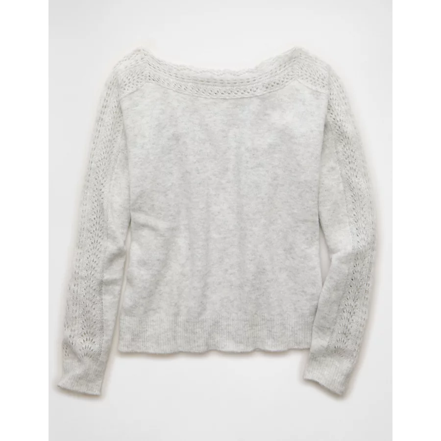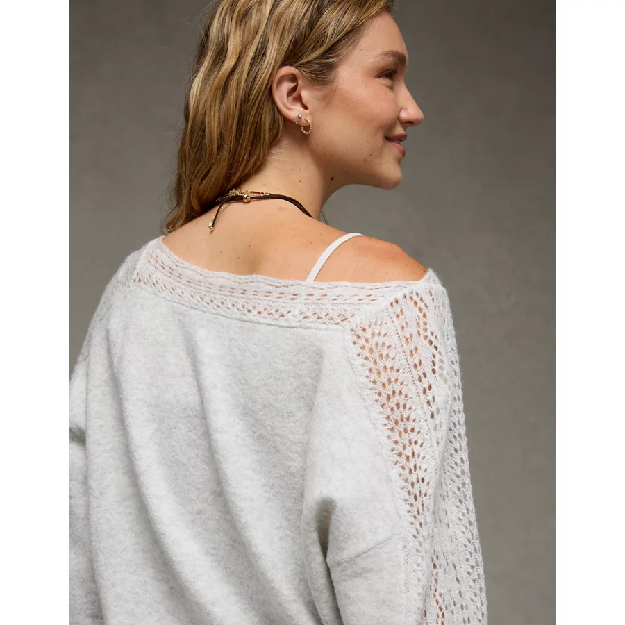 AE Whoa So Soft Lace Sweater – Light Heather Gray