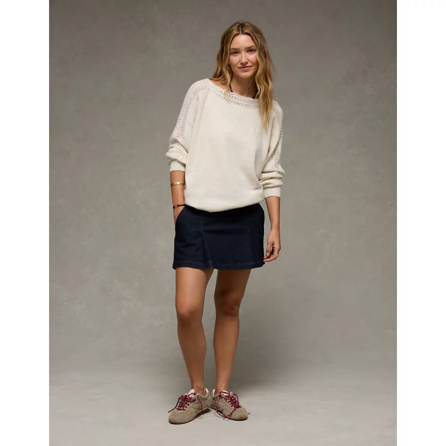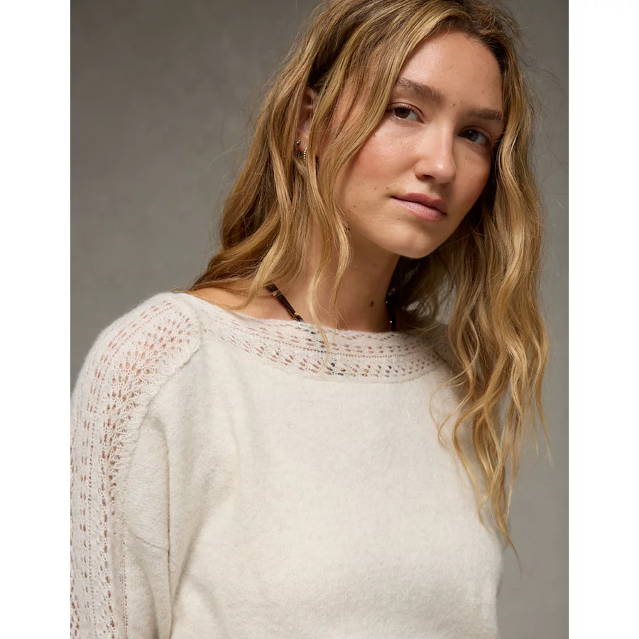 AE Whoa So Soft Lace Sweater – Oatmeal