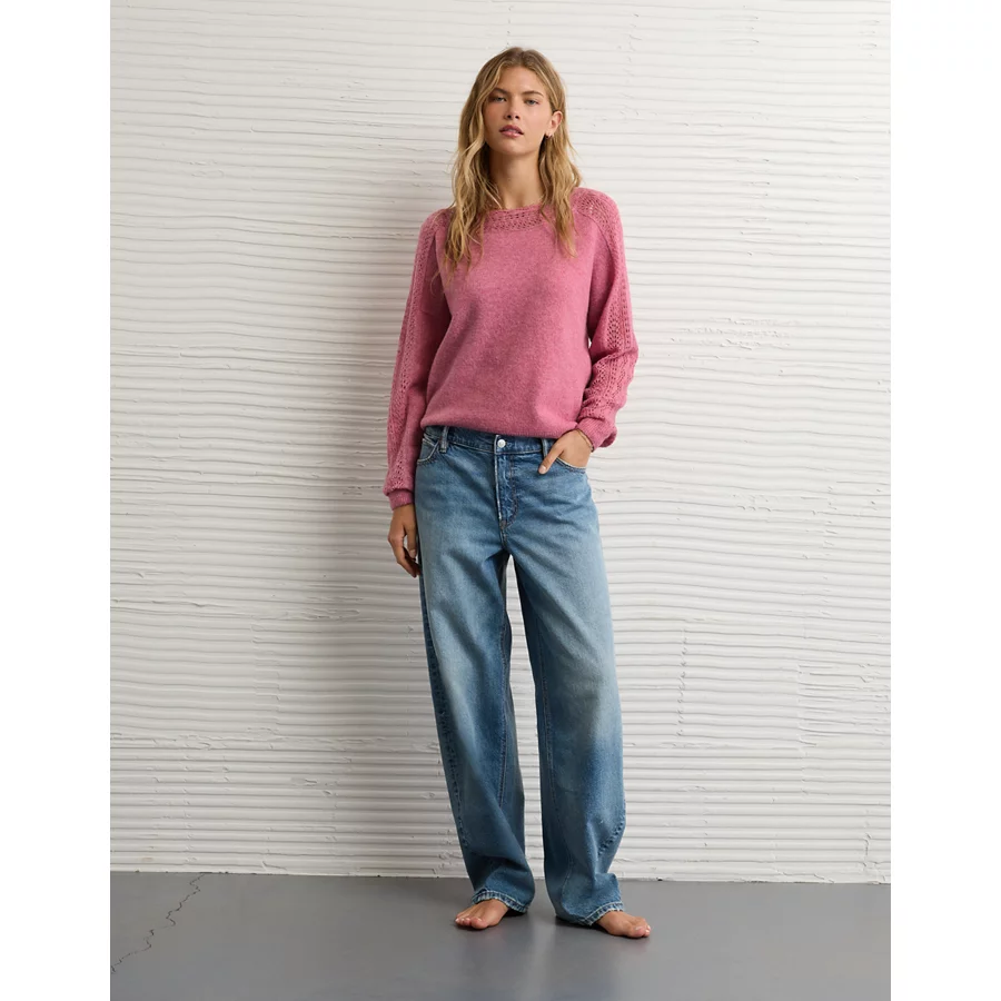 AE Whoa So Soft Lace Sweater - Blue Breeze