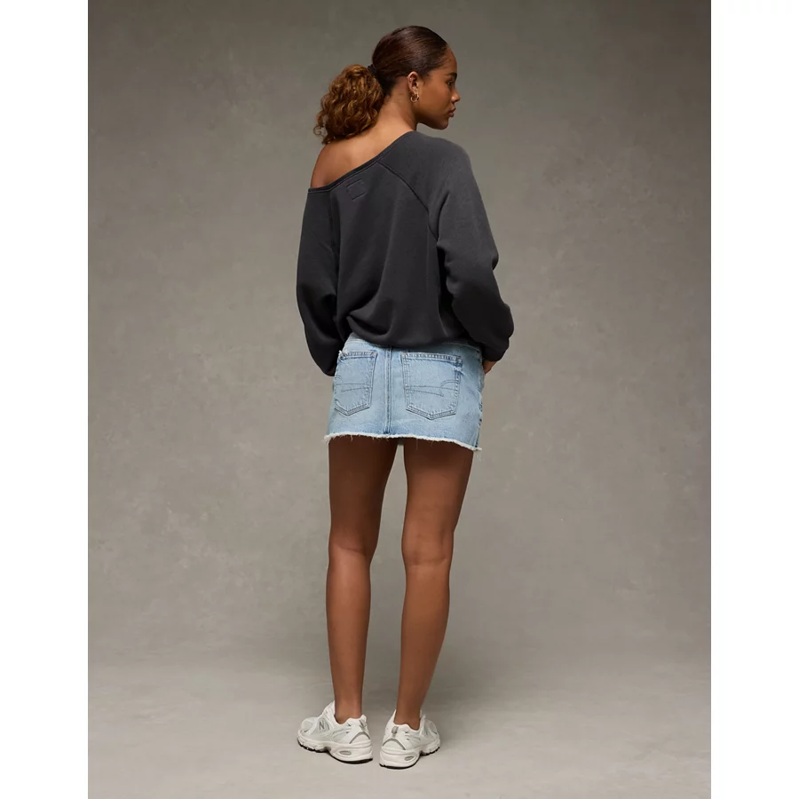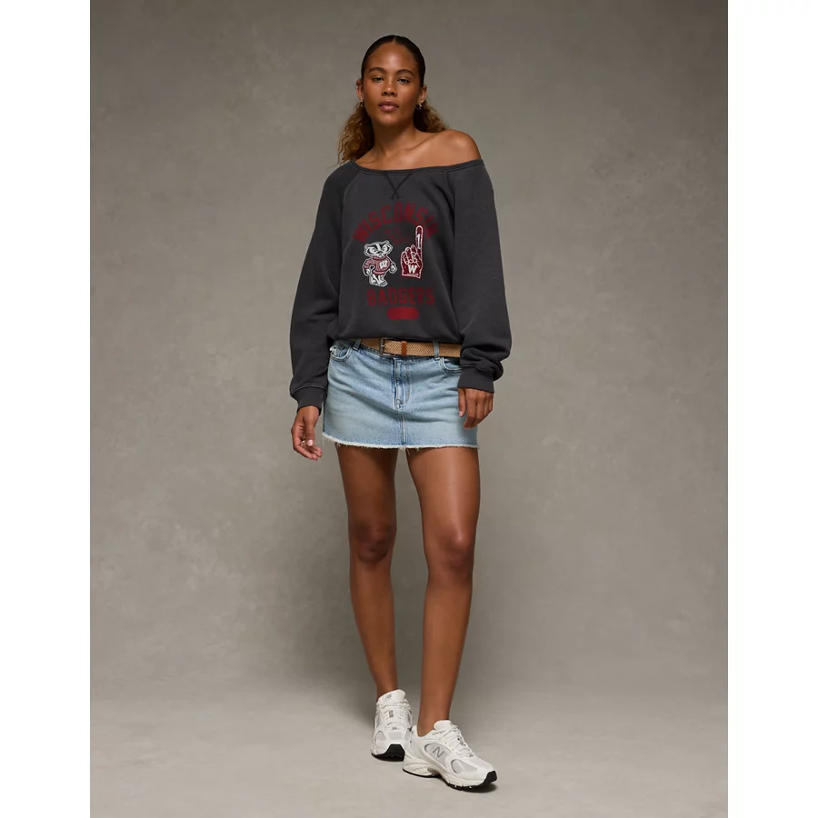 AE Wisconsin Badgers Graphic Off The Shoulder Sweatshirt – Faded Black