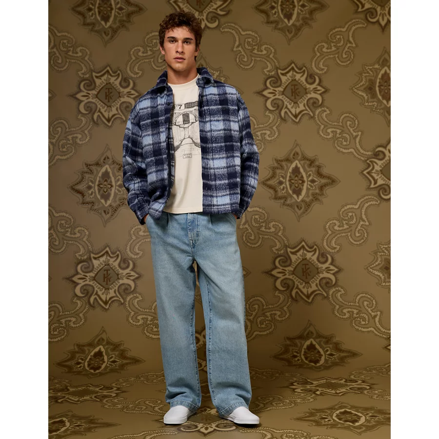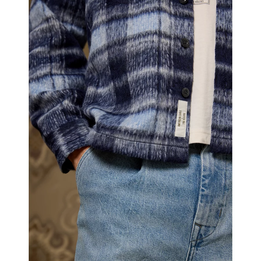 AE x Tru Kolors Heavyweight Brushed Plaid Overshirt – Navy