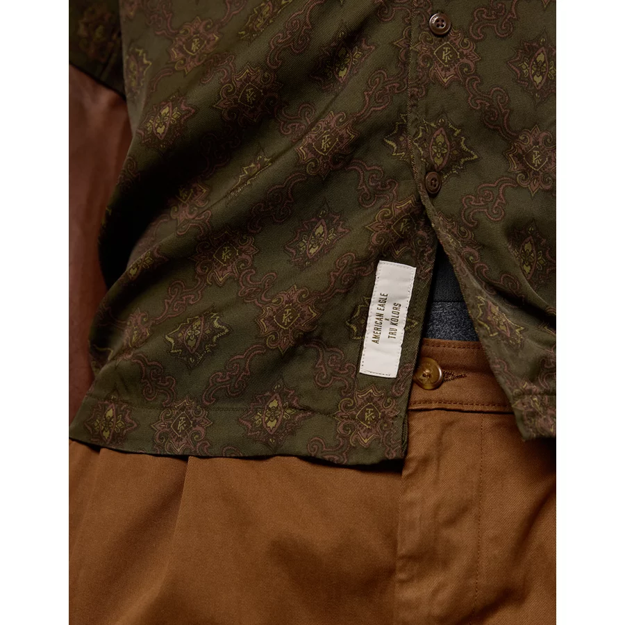 AE x Tru Kolors Short Sleeve Paisley Camp Shirt – Olive
