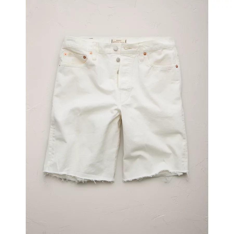 AE77 Premium Baggy Bermuda Denim Short – White