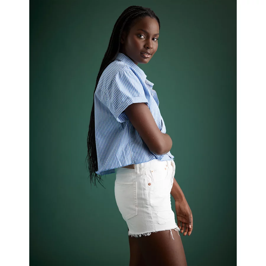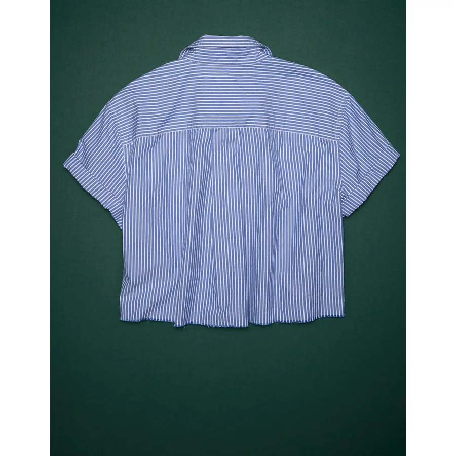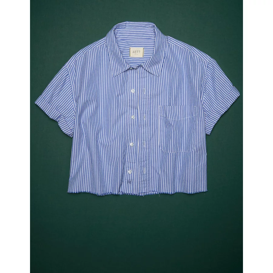 AE77 Premium Boxy Crop Poplin Shirt – Blue