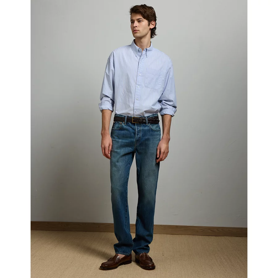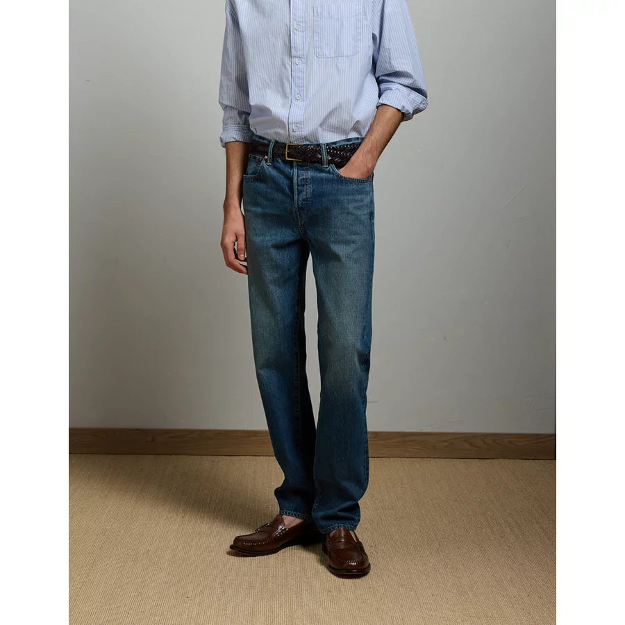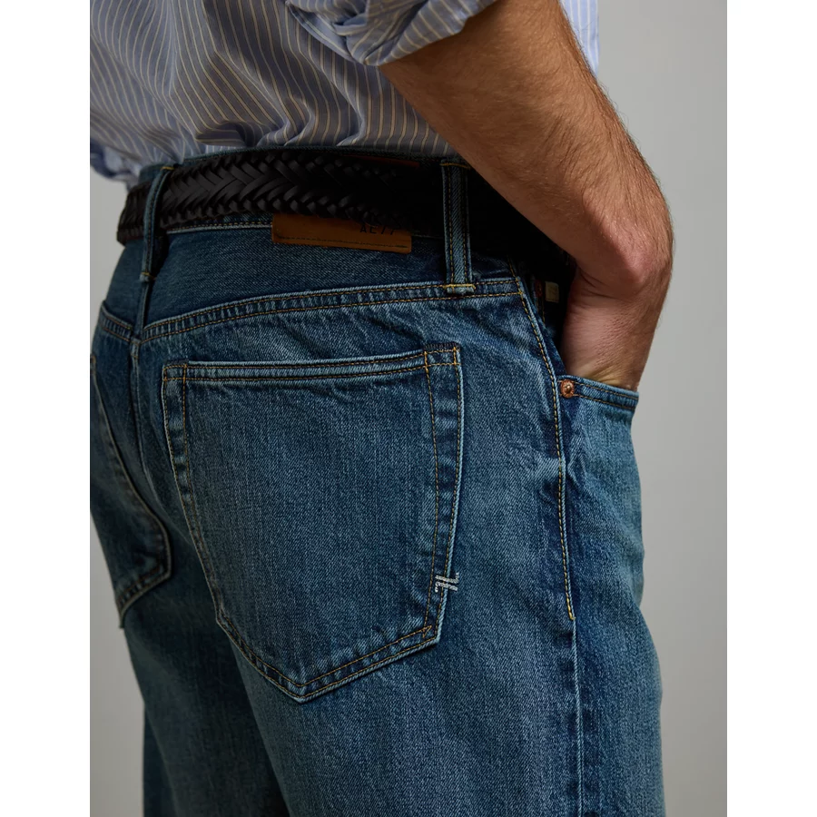 5-pocket styling with hand-set rear pockets and handcrafted hinged bartacks