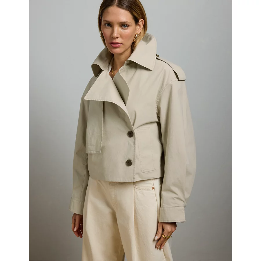 AE77 Premium Cropped Utility Trench Coat – Bone Khaki