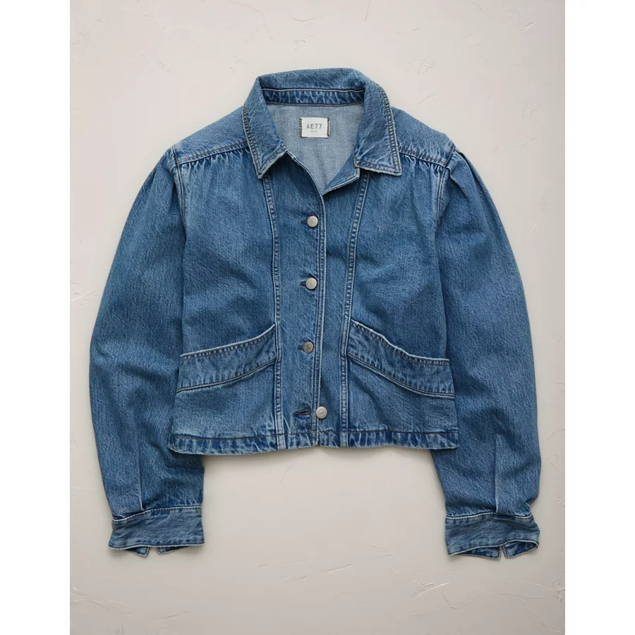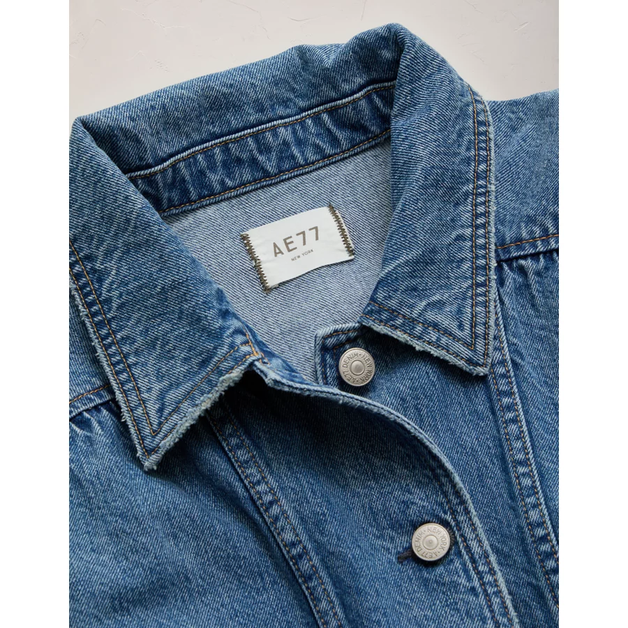 AE77 Premium Denim Cropped Jacket – Medium Wash