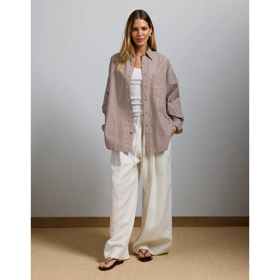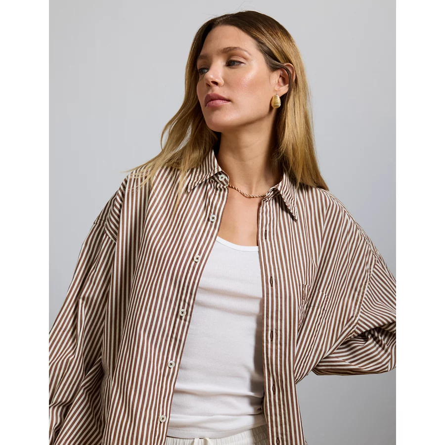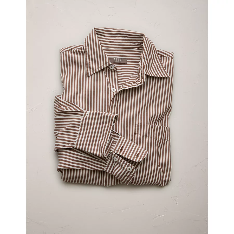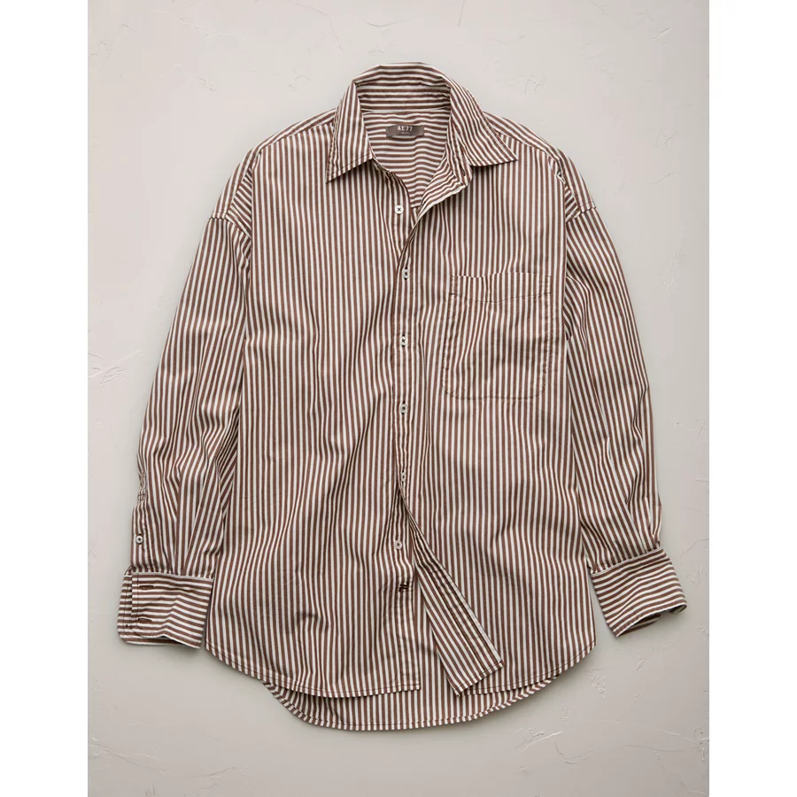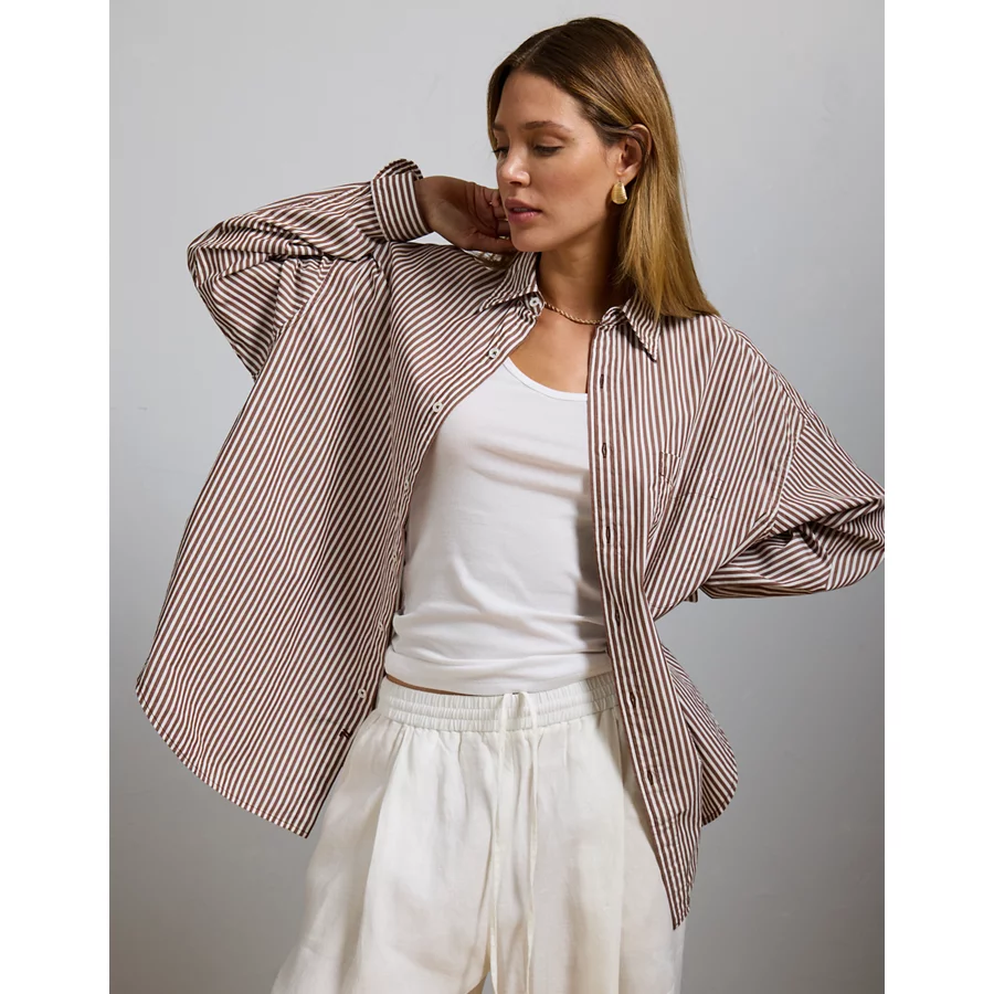 AE77 Premium Oversized Poplin Boyfriend Shirt – Brown