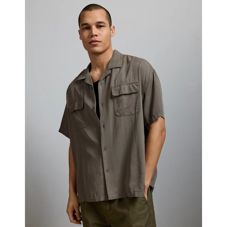 AE77 Premium Relaxed Short-Sleeve Button-Up Shirt - Khaki