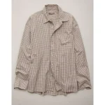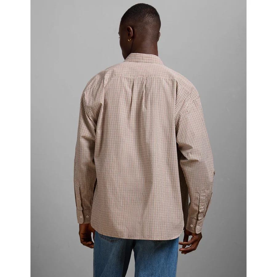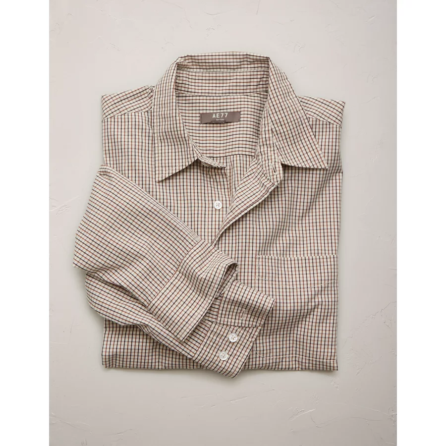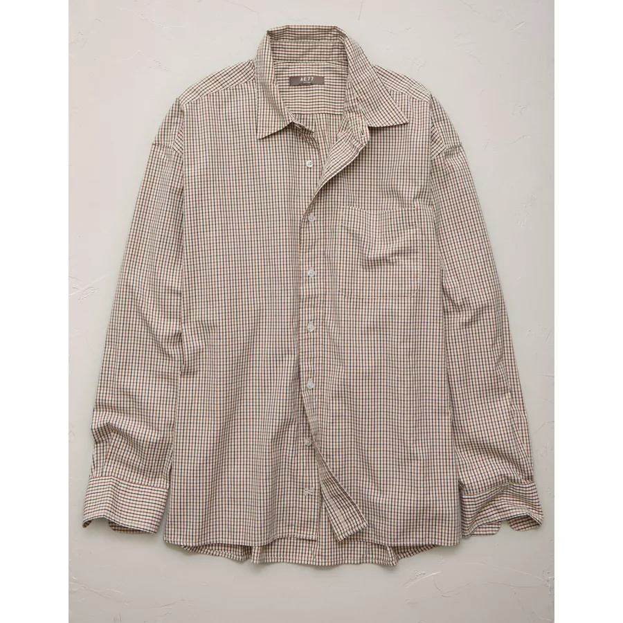 AE77 Premium Relaxed Striped Poplin Button-Up Shirt – Khaki