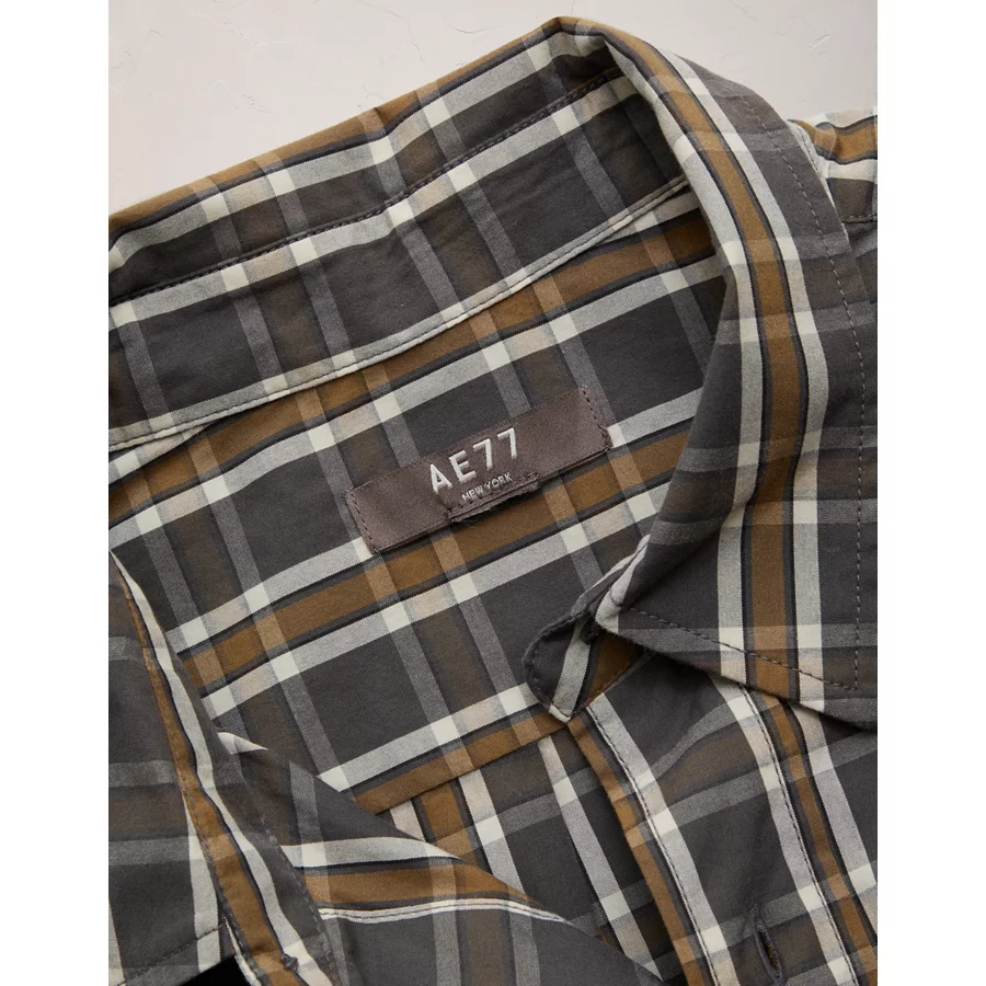 AE77 Premium Relaxed Short-Sleeve Button-Up Shirt - Olive