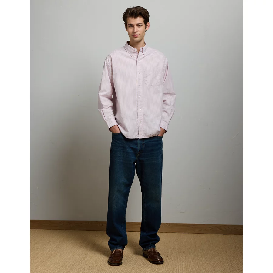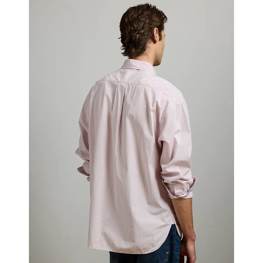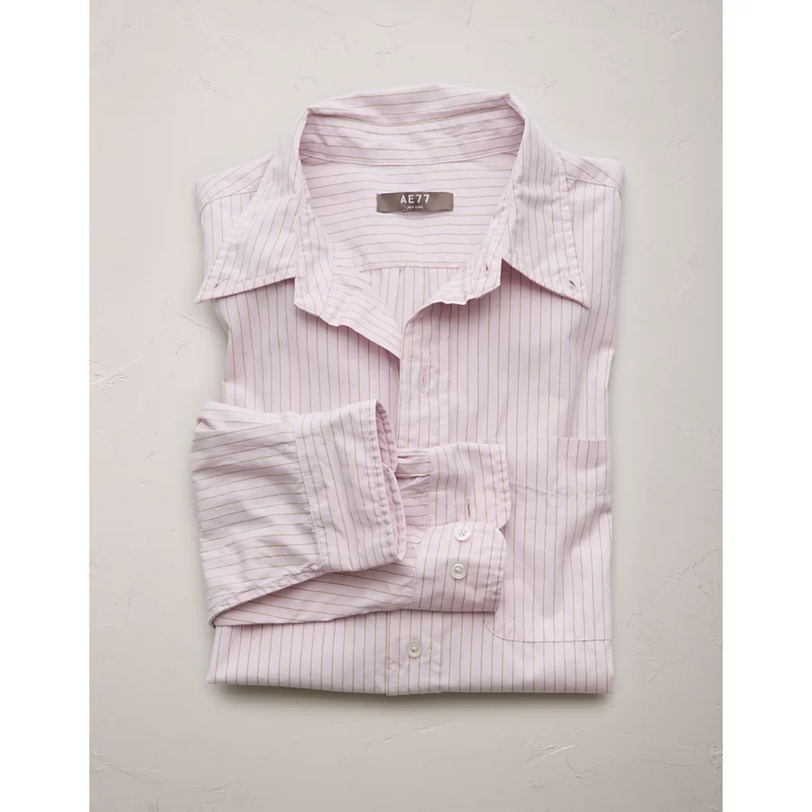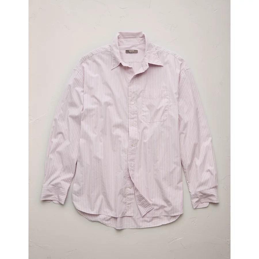 AE77 Premium Relaxed Striped Poplin Button-Up Shirt – Pink