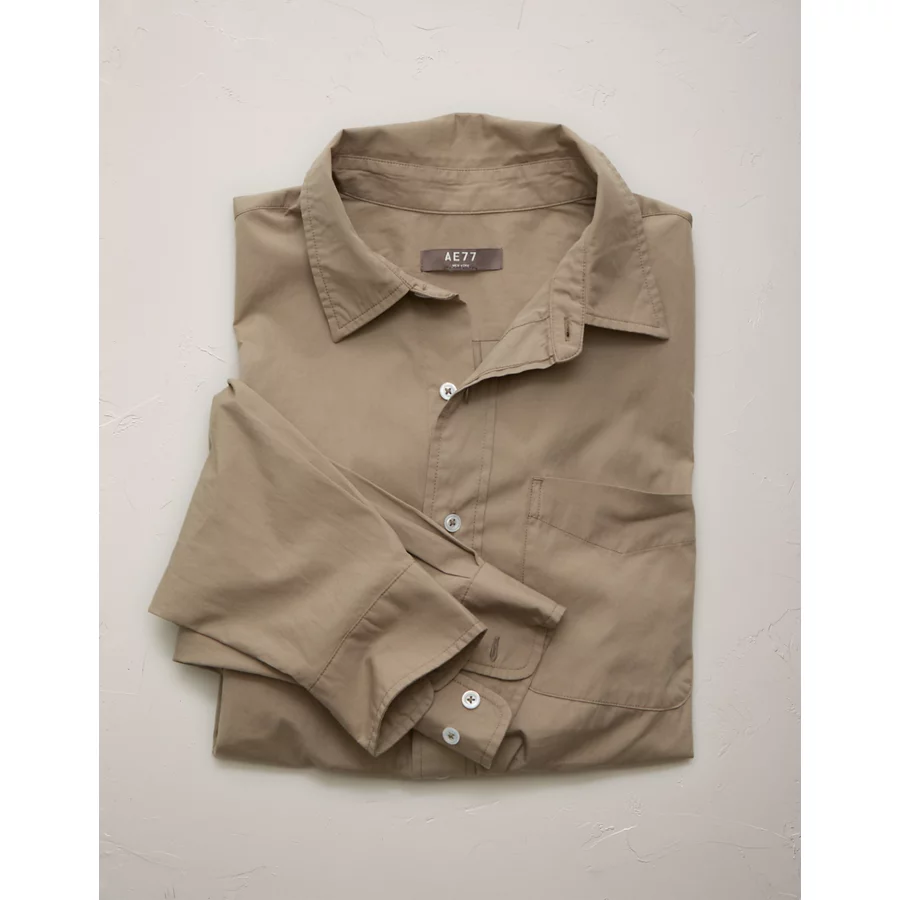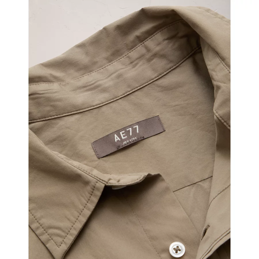 AE77 Premium Relaxed Striped Poplin Button-Up Shirt - Khaki