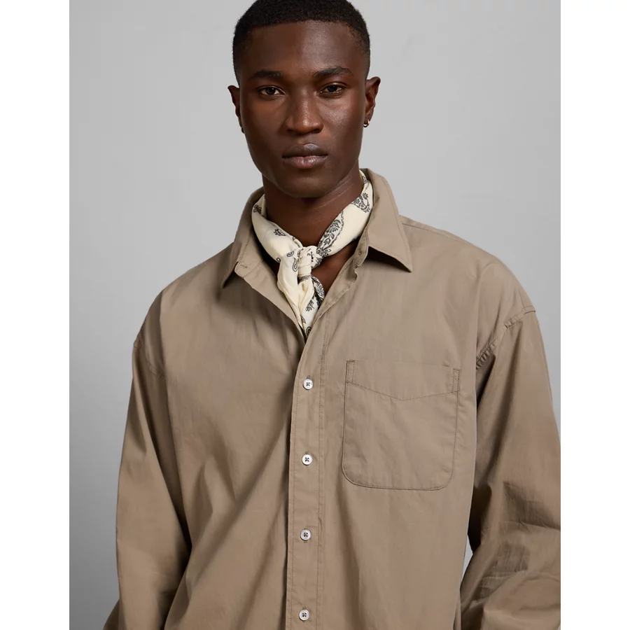 AE77 Premium Relaxed Striped Poplin Button-Up Shirt – Taupe