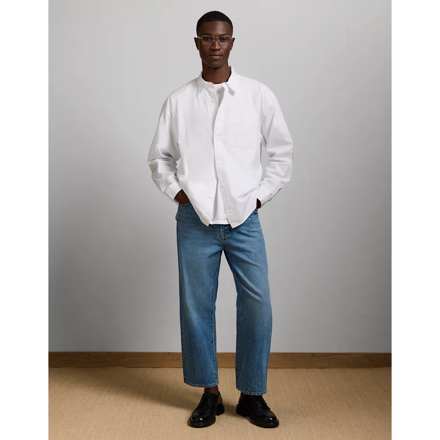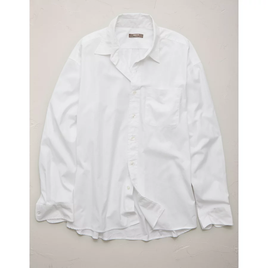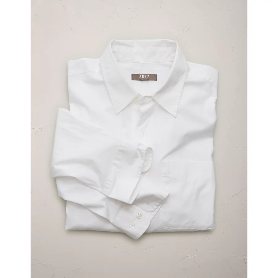AE77 Premium Relaxed Striped Poplin Button-Up Shirt – White