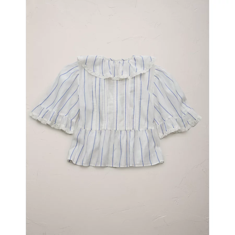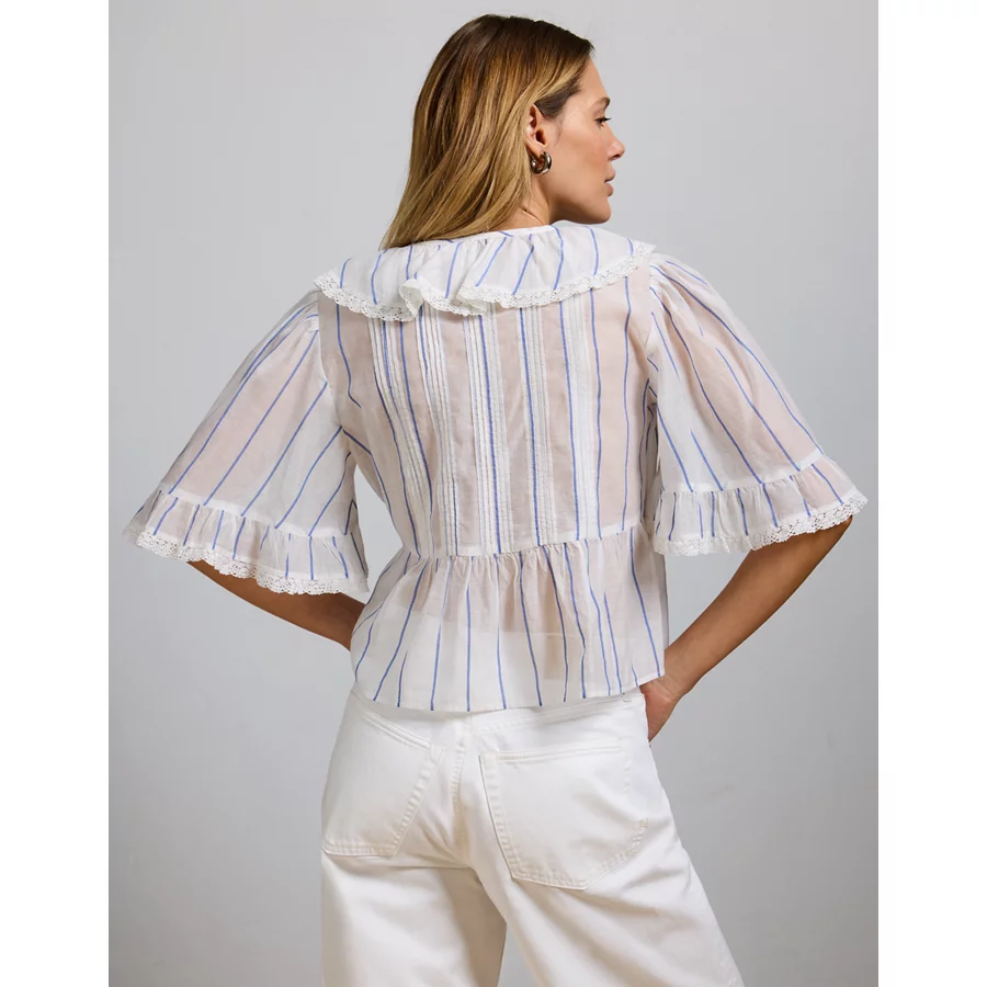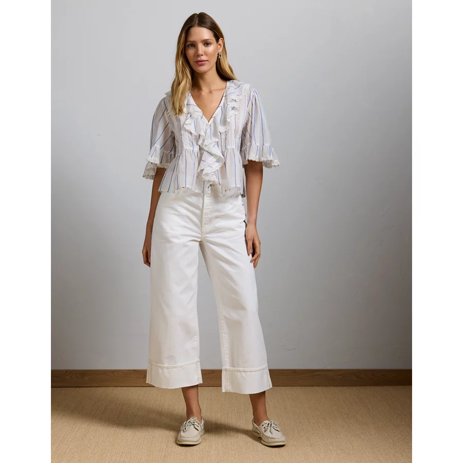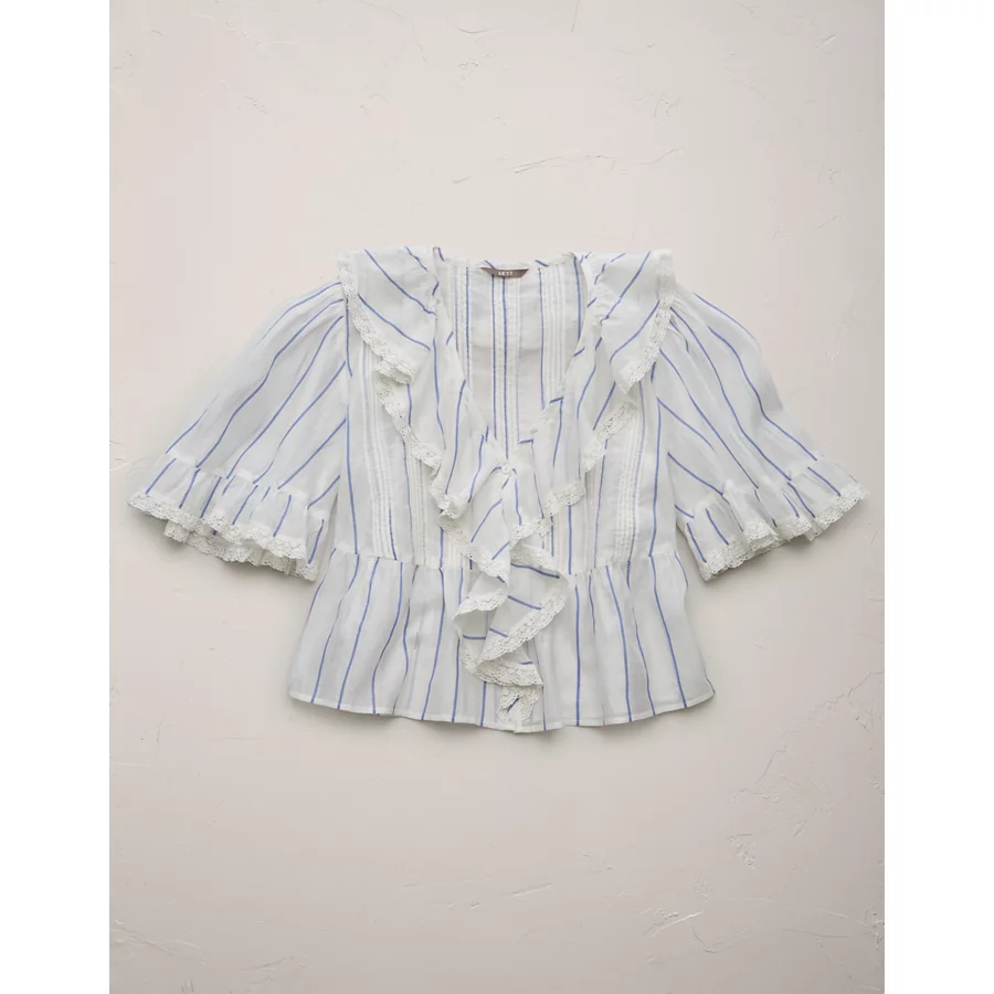 AE77 Premium Ruffle V-Neck Blouse – White