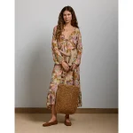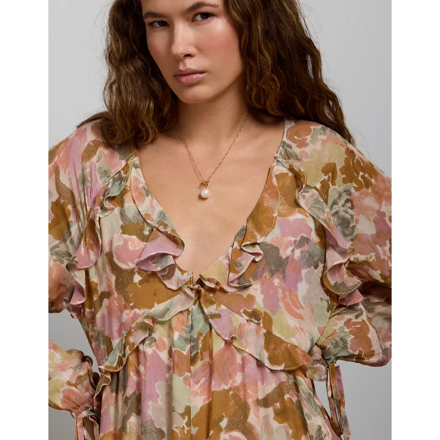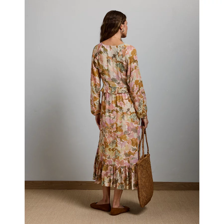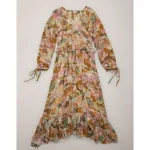 AE77 Premium Ruffled Chiffon Midi Dress – Multi