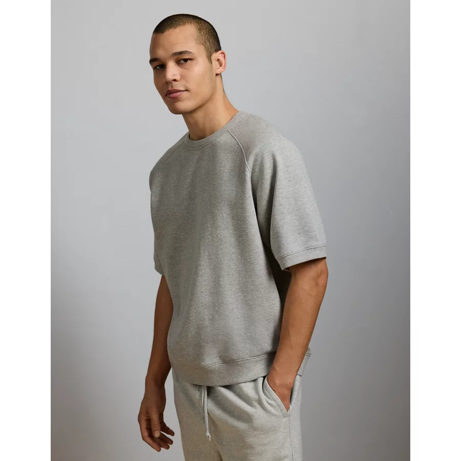 AE77 Premium Short-Sleeve Sweatshirt – Heather Gray