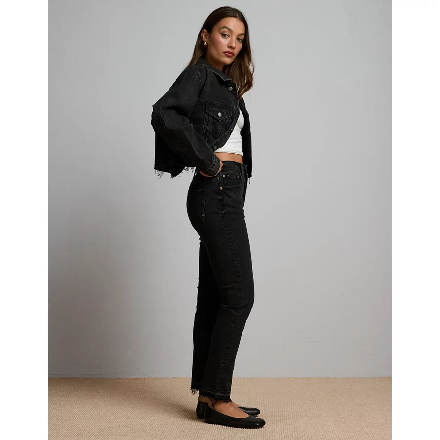 AE77 Premium Straight Crop Jean – Black Wash