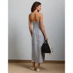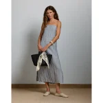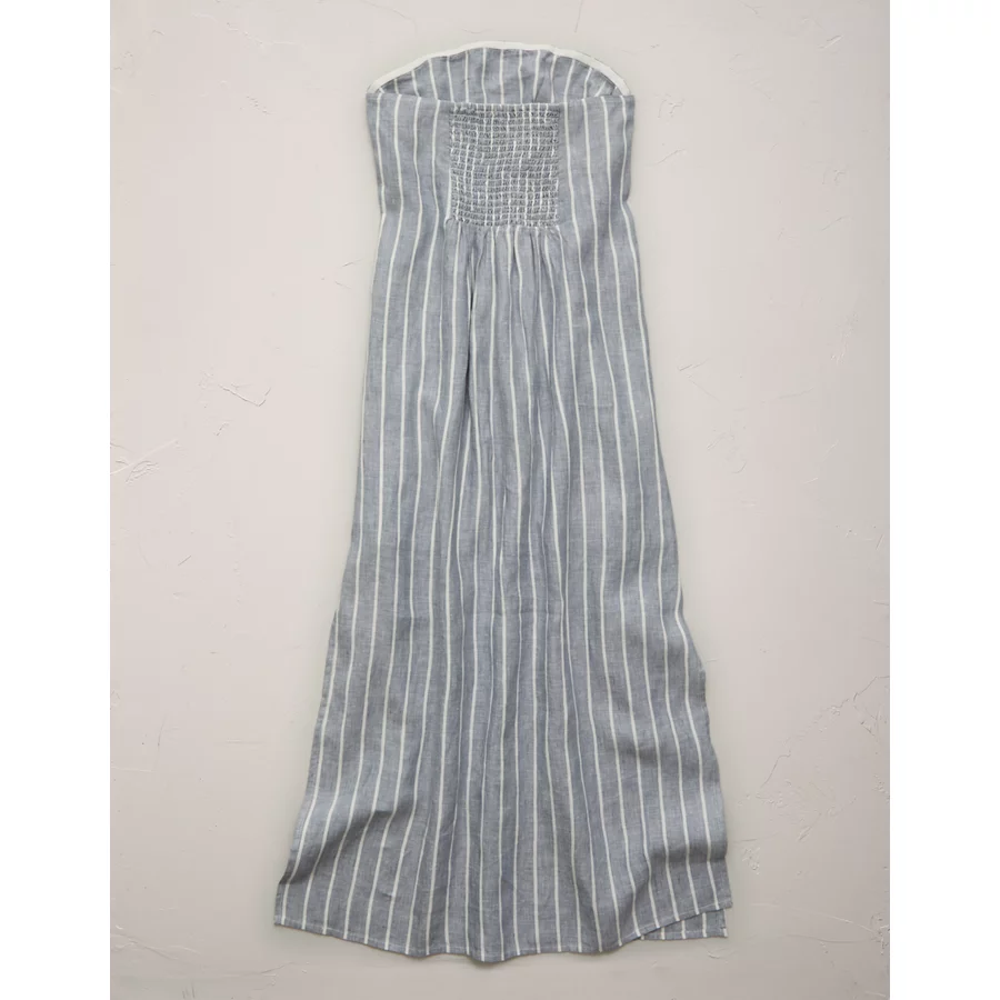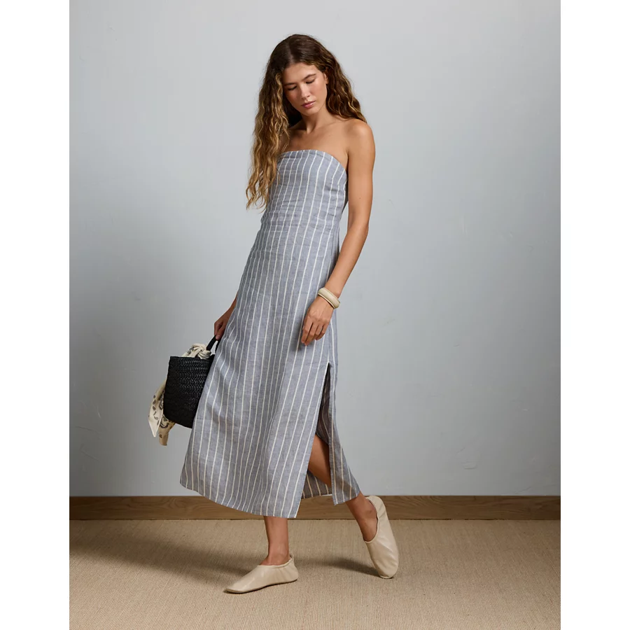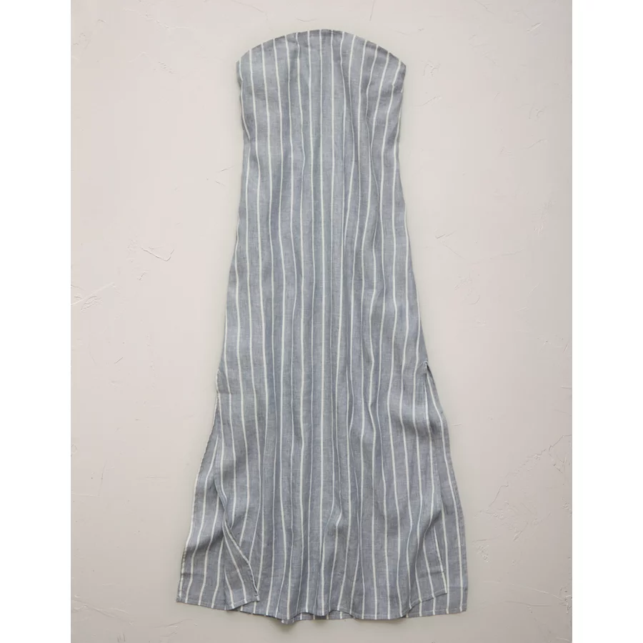AE77 Premium Strapless Linen Midi Dress – Blue