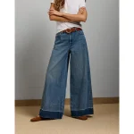 AE77 Premium Super Wide Cuffed Jean - Light Wash