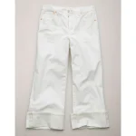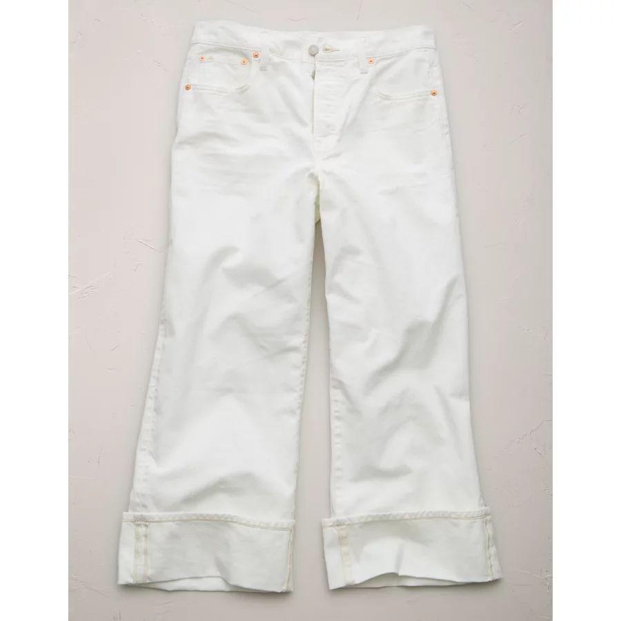AE77 Premium Wide Crop Cuff Jean – White