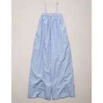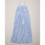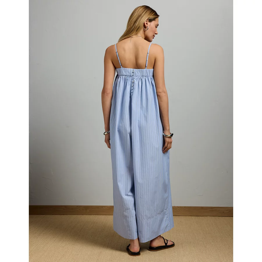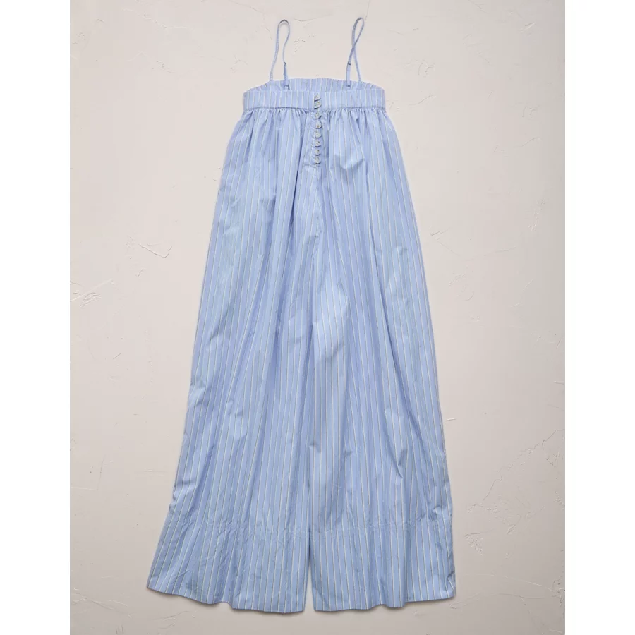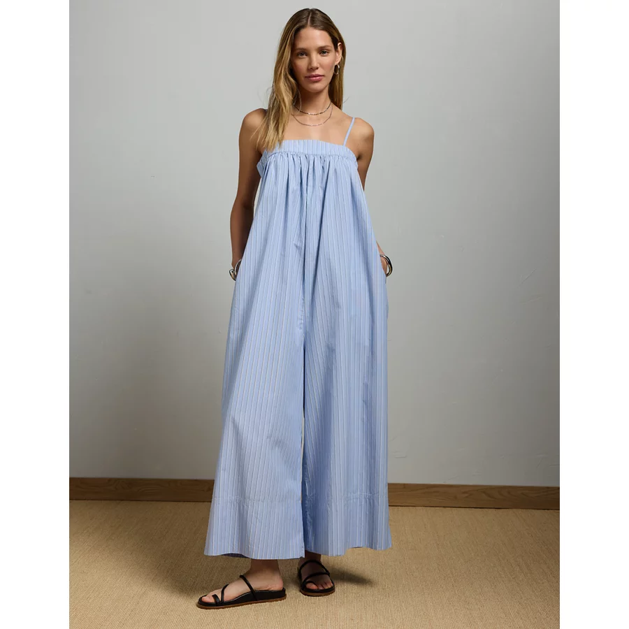 AE77 Premium Wide-Leg Cropped Poplin Jumpsuit – Blue