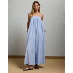 AE Asymmetrical Ruffle Maxi Slip Dress – Blue