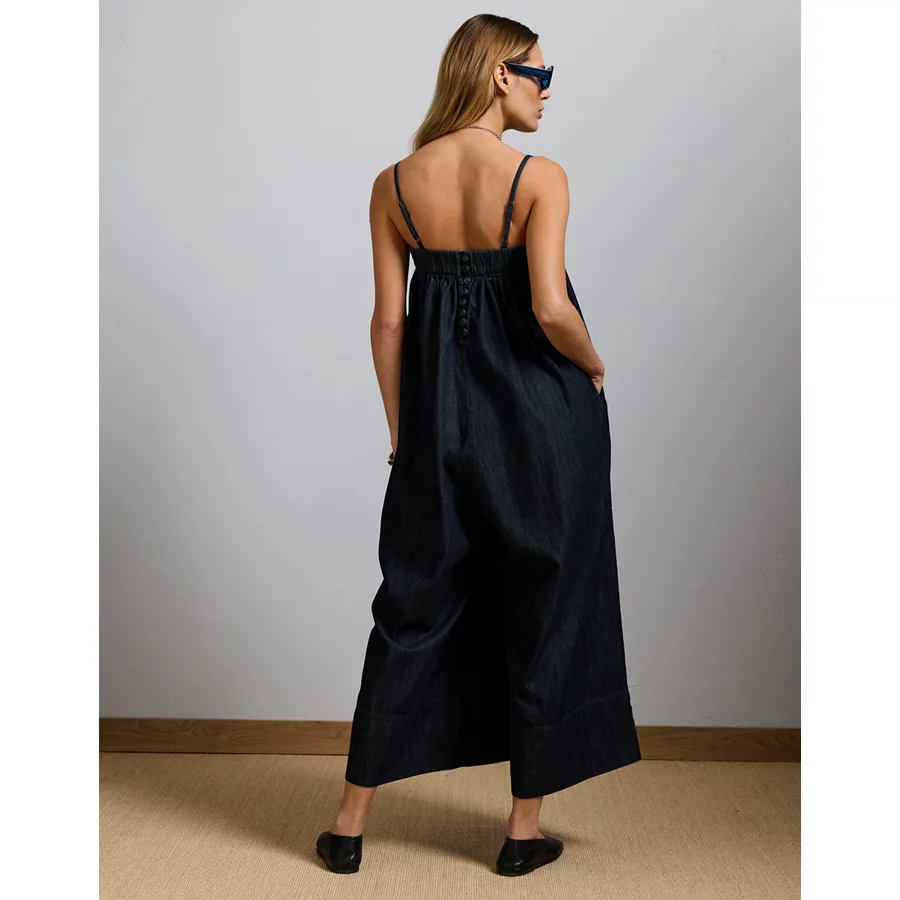 AE77 Premium Wide-Leg Denim Jumpsuit – Dark Wash