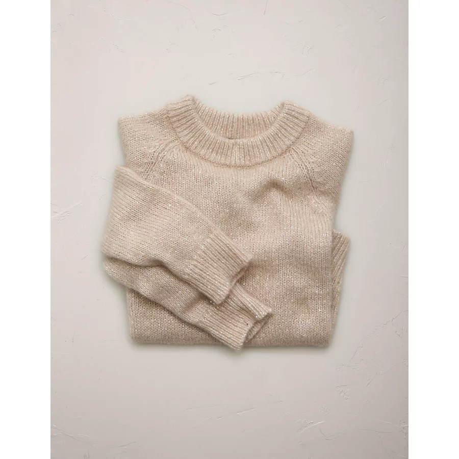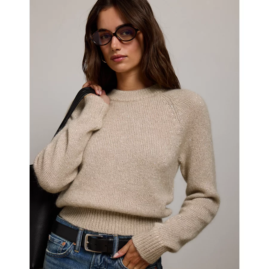 AE77 Sparkle Shrunken Crew Neck Sweater – Light Brown