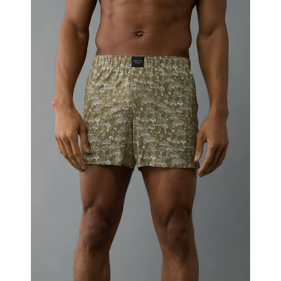 AEO Men’s Mushrooms Slim Knit Ultra Soft Boxer Short – Olive