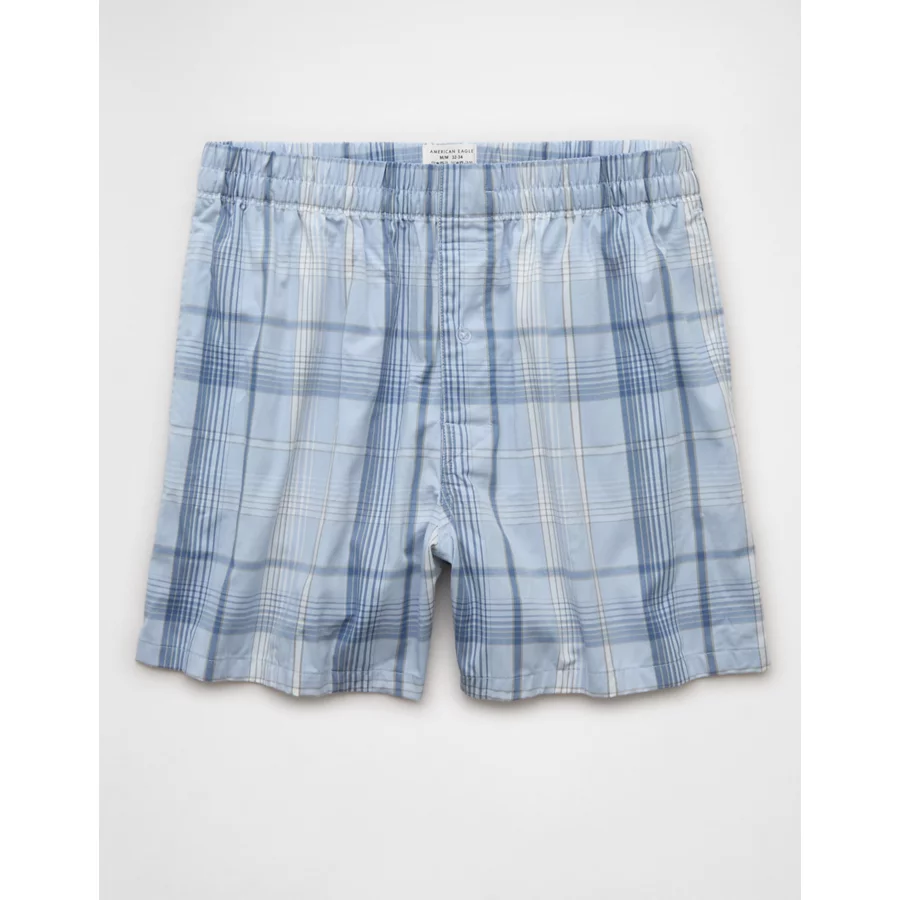 AEO Men’s Plaid Poplin Pocket Boxer Short – Blue Path