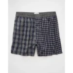 AEO Men’s Plaid Stretch Poplin Boxer Short – Grey