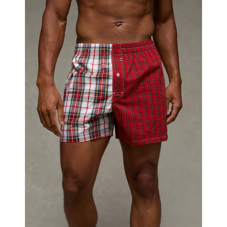 AEO Men’s Plaid Stretch Poplin Pocket Boxer – Red