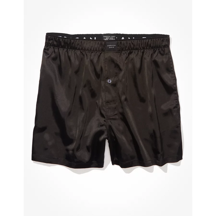 AEO Men’s Solid Satin Pocket Boxer Short – Black