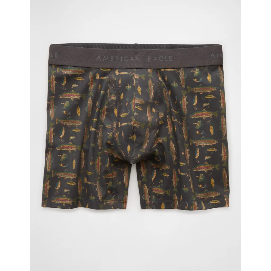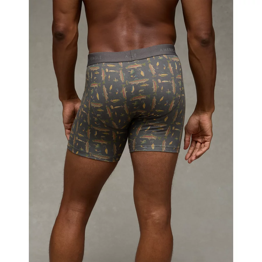 AEO Men's Trout Print 6" Flex Boxer Brief - Charcoal