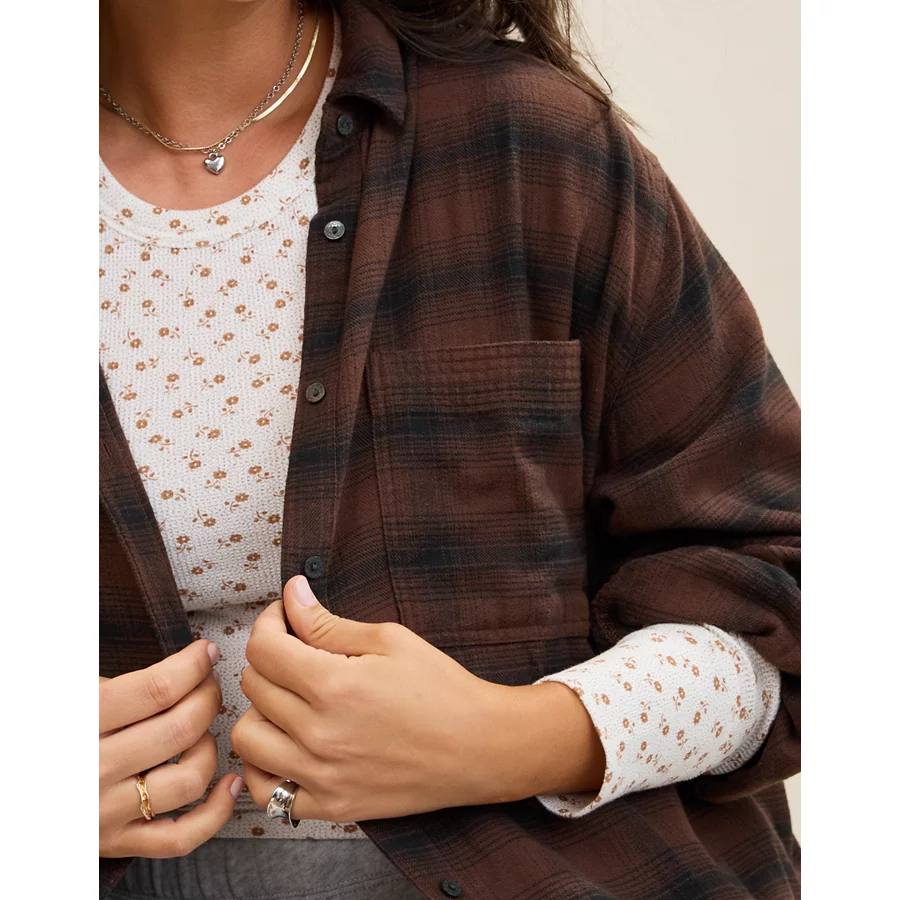 Aerie Anytime Fave Flannel Button Down Shirt – Canyon Sun