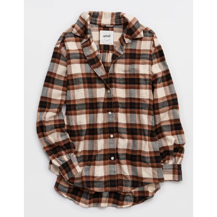 Aerie Anytime Fave Flannel Button Down Shirt – Sandbar